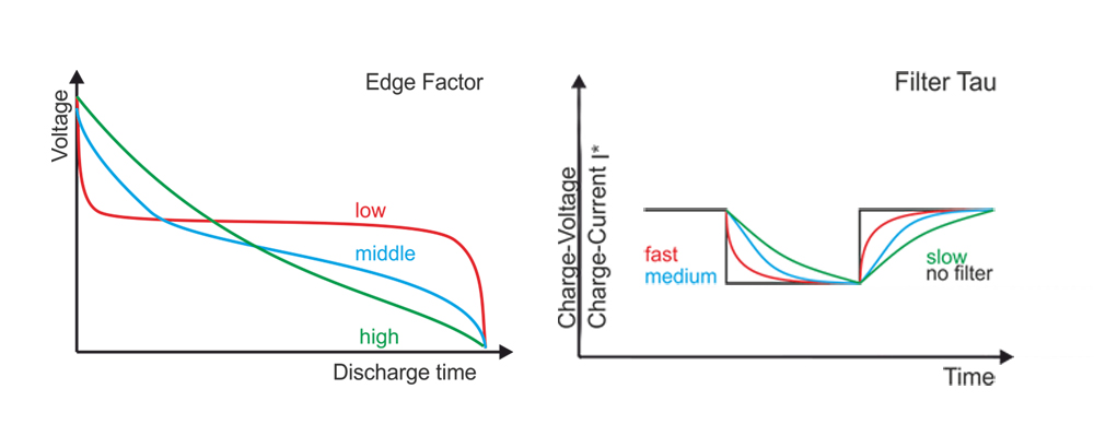 Left: Influence of the Edge Factor on the discharge curve