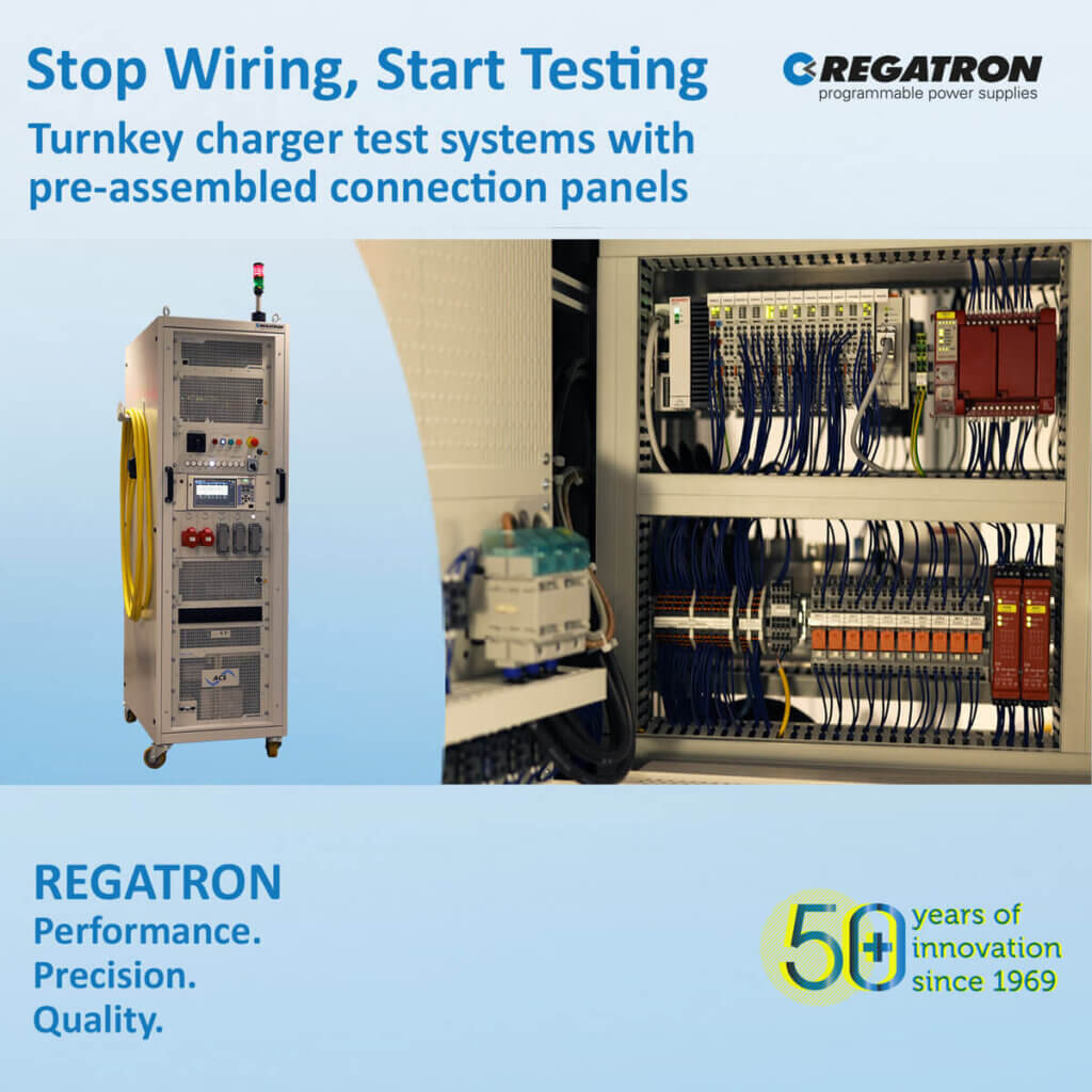 REGATRON’s Field Application Engineers have reported that, particularly in the ‘testing and qualification’ sector, a significant amount of time is spent on wiring and connecting the DUTs. That is why for example REGATRON’s Turnkey Charger test systems are now offered with pre-assembled connection panels featuring a wide range of worldwide used socket types. Each socket can be switched whether individually by hand with selector buttons or via interface connected to an automation system. Simply plug in and start and forget about time-consuming and error-prone wiring.