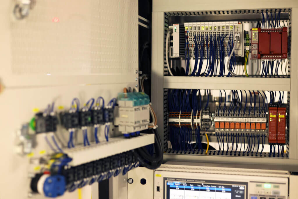 - Beckhoff PLC components control the 4-Q power supply unit, the contactors including mutual safety interlocking, as also selector switches and various status lights