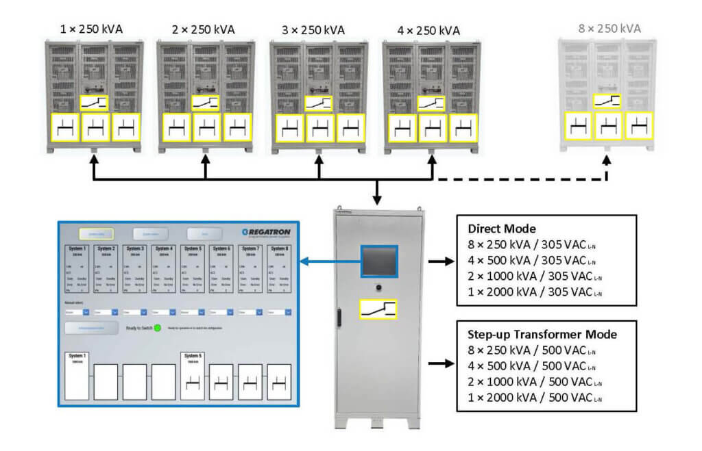 The 1000 kVA system shown in Figure 1 consists of four 250 kVA TC.ACS systems. These can be connected individually or in combination up to 1000 kVA.