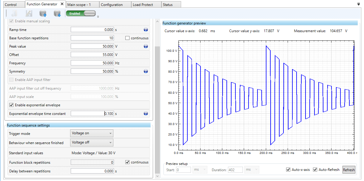 The TFE time-based function generator allows programming either through G5.Control operating software, HMI touch display, or various interfaces.